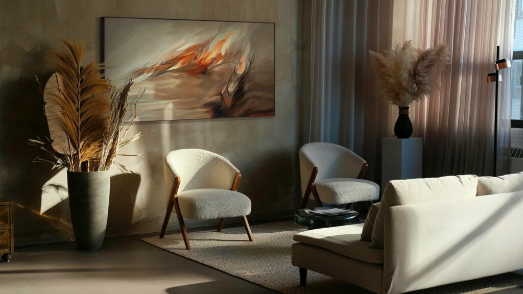 Art can subtly transform the atmosphere of an interior. With BRUMAS 02, painter Diana Fuertes presents a composition inspired by the quiet transitions of nature, where colour and texture interact to create a calm, luminous presence within the space.